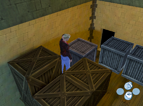 back of the room (W), and climb into the small gap in amongst the crates